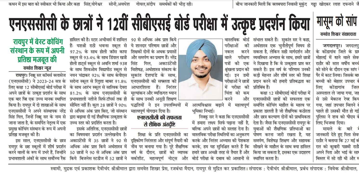 This year, NSCC students have emerged as top performers across six schools in Raipur